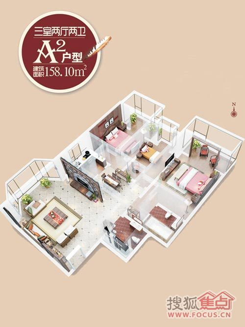 3室2厅2卫-东达迎泽苑三室两厅两卫158㎡A