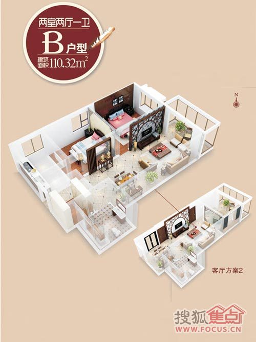 2室2厅1卫-东达迎泽苑两室两厅一卫110㎡B