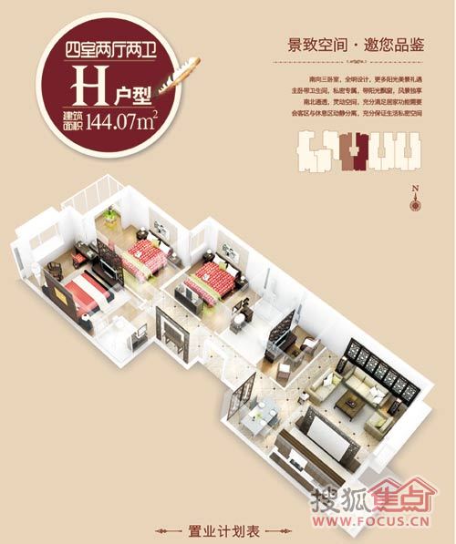 4室2厅2卫-东达迎泽苑四室两厅两卫144平H