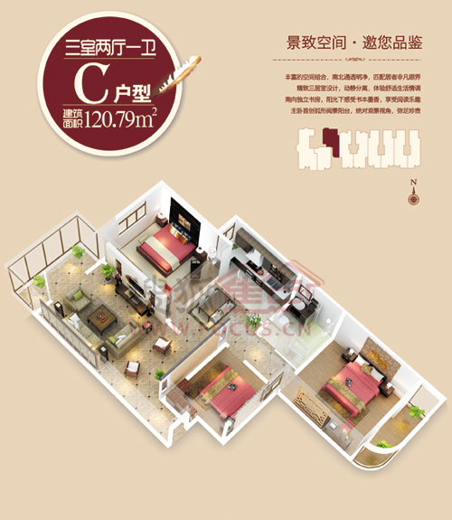 3室2厅1卫-东达迎泽苑三室两厅一卫120C