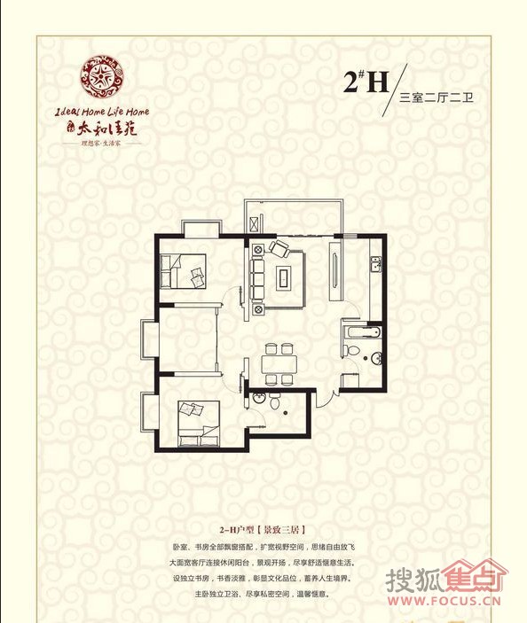 3室2厅2卫-万锦太和佳苑2#楼3室2厅2卫H户型