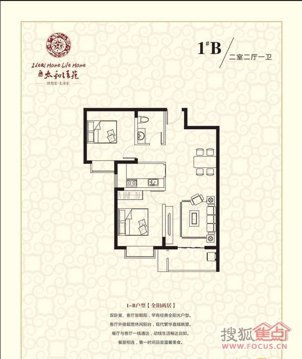 2室2厅1卫-万锦太和佳苑1#楼B户型
