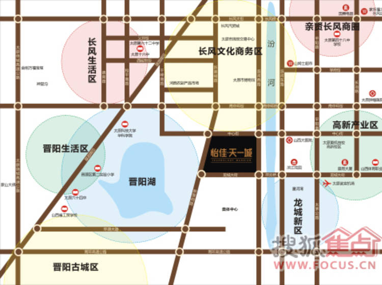 怡佳天一城项目位于晋源区,新晋祠路以东、冶峪河以南、滨河西路以西、龙城大街以北。西依在建的省广电中心,北接长风商务区五大场馆,配套醇熟。项目东临汾河,西望晋阳湖,占地450余亩,总建筑面积达161万平方米、总投资约180亿。