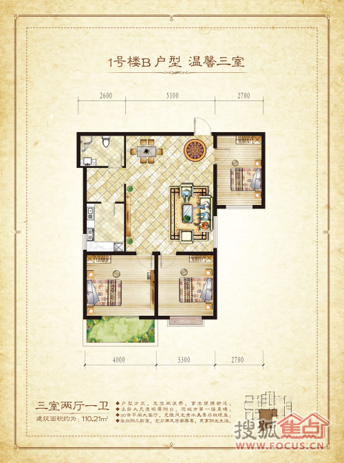 3室2厅1卫-1#B