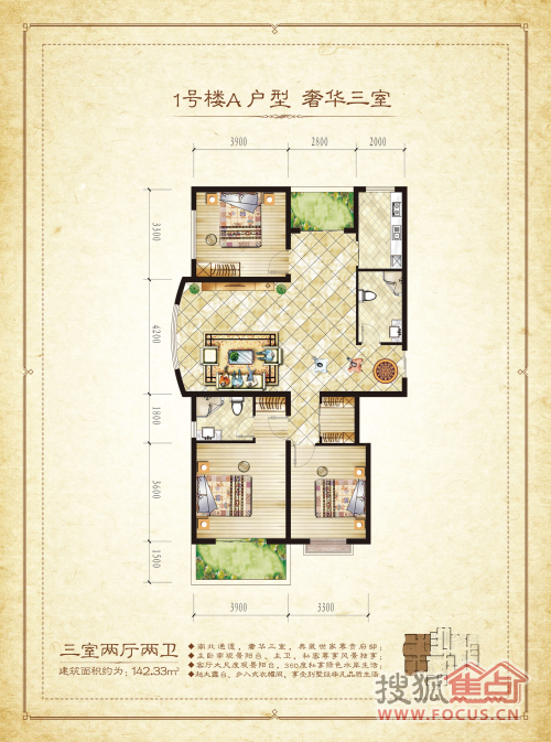 3室2厅2卫-1#A