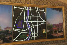 行驶至滨河西路和迎宾路交汇处,向东顺行200米即到。