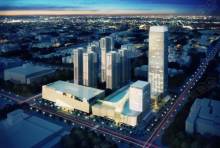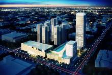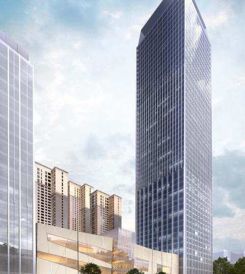茂业中心位于整个项目的东北角,总高226米,建成后将成为太原新的地标性建筑物。茂业中心,总建面为10万㎡,地上52层,地下2层,单层面积为2000平米。大堂高度为11米,大堂面积为1080㎡。共配备15部进口日立电梯,速度达到5米/秒。茂业中心有2800个车位,极大地满足现代办公用户的使用需求。