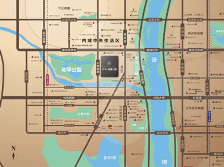 保利海德公园·海德府区域内遍布五纵两横立体交通路网及规划中的地铁3号线,可畅达全城;并辐射南城新兴的长风商务区,享山西保利大剧院、山西博物馆等五大城市场馆,为长风、亲贤商圈、南内环商圈、下元商圈、万象城商圈五大商圈拥簇。出则享内城鼎盛繁华、交通便捷、购物休闲等更为繁华的便利生活,入则享内城之央私享和平公园30万方胜景环绕的适意慢生活。