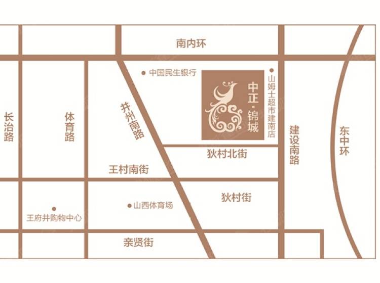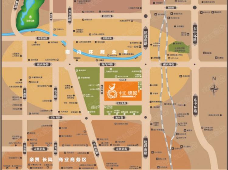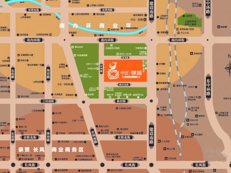 中正·锦城位于太原市建设路与南内环交界口西南角,项目周边路网发达,交通便利,建设路、并州路、东岗路、太行路、南内环街等城市快速主干道环绕锦城左右,多条公交线路为锦城而设。