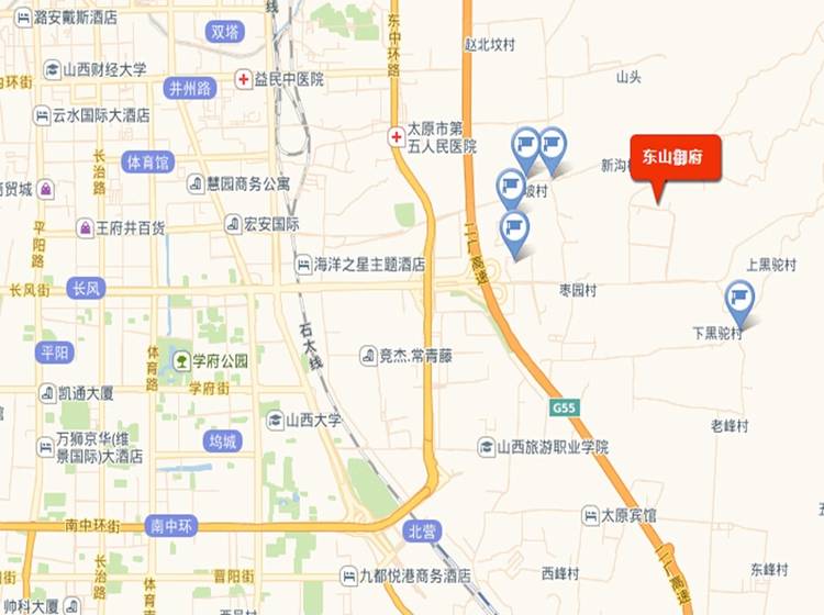 学校:距离项目约1500米有即将投入使用的山大附中志达中学,东山有规划的山西大学、山西财经大学等高校新址,车行10分钟以内可到达山大附中、九一小学、八一小学、山西现代双语、山大、财大等学校;
