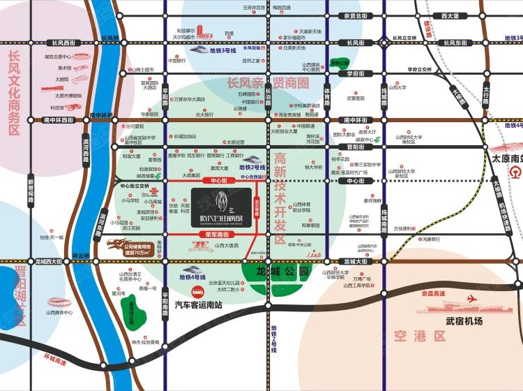 时代自由广场项目位于太原市高新技术开发区,总占地面积达50亩,总建筑面积达25万平方米,紧邻地铁2号线中心街西站。