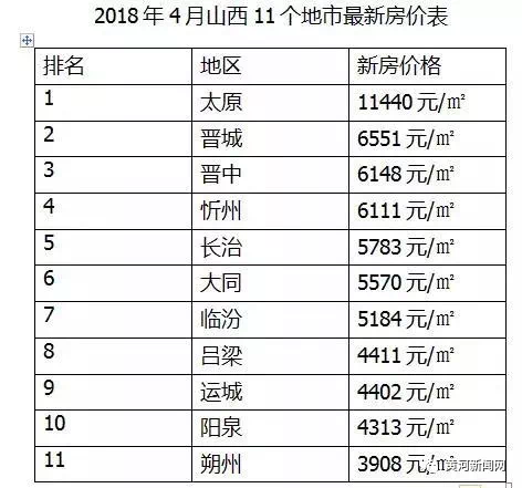 数据显示,11个地市中,房价较高为太原,已经突破了1万元,较低的为朔州。大家快看看自己家乡的房价能排第几吧!