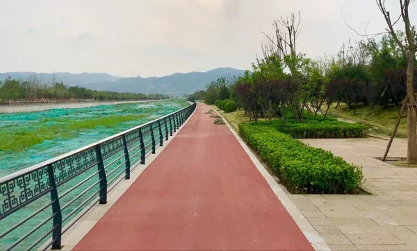 作为一条旅游景观通道,风峪河改造工程的一大亮点是在河道挡墙外侧增加了彩色健身步道,为周边居民提供了一个健身休闲的新场所。同时,按照“八河治理”的统一标准,风峪河实施了疏浚清障、截污纳管,还在西山源头加建了沉沙池。作为行洪河道,改造后的风峪河连同道路和两侧绿化带,最宽处达到110米,防洪级别达到了百年一遇。