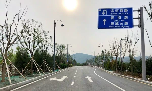 风峪河道路快速化改造及综合治理工程西起太原植物园北门,东至滨河西路,单侧长约6.4公里,新建7座下穿通道、4座跨河桥,道路主线单向双车道,设计时速50公里,全线没有红绿灯,从滨河西路口驾车不到10分钟,便可步入太山脚下。