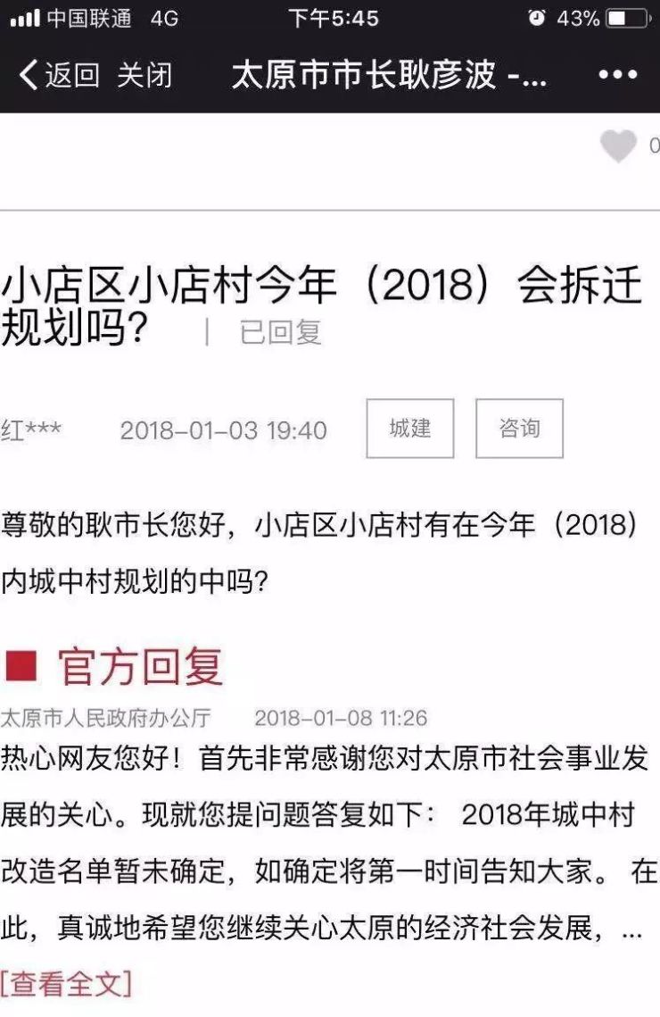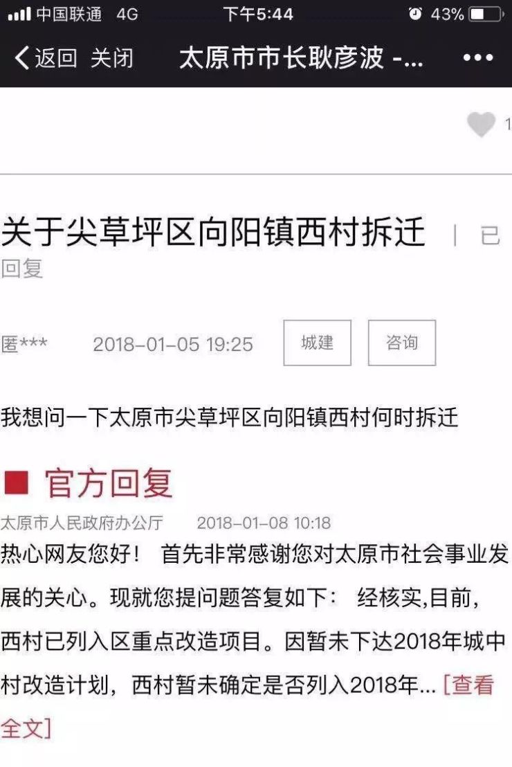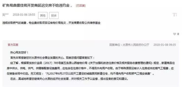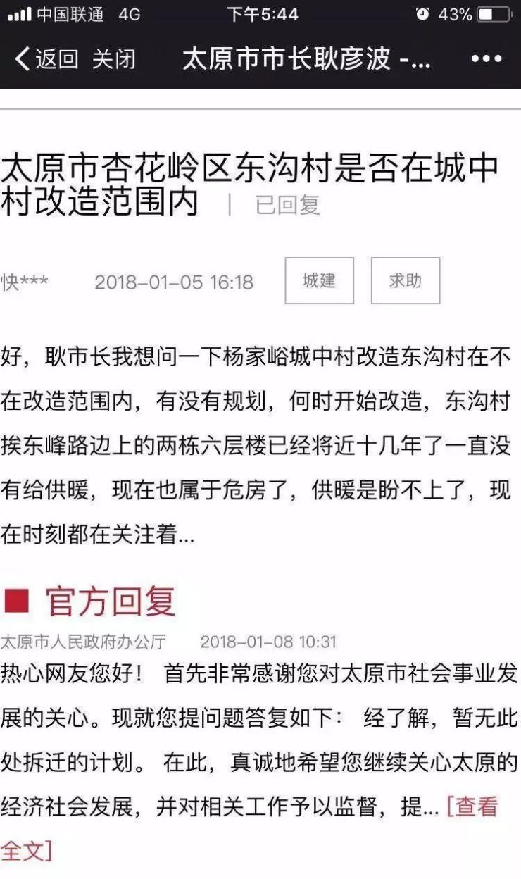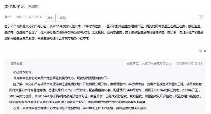 太原市人民政府办公厅官方回复