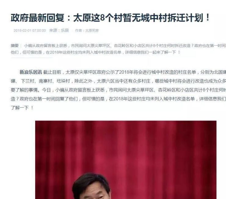 截止目前,太原仅尖草坪区政府公示了2018年将会进行城中村改造的村庄名单,分别为北固碾、南固碾、下兰村、南寨村、圪垛村。
