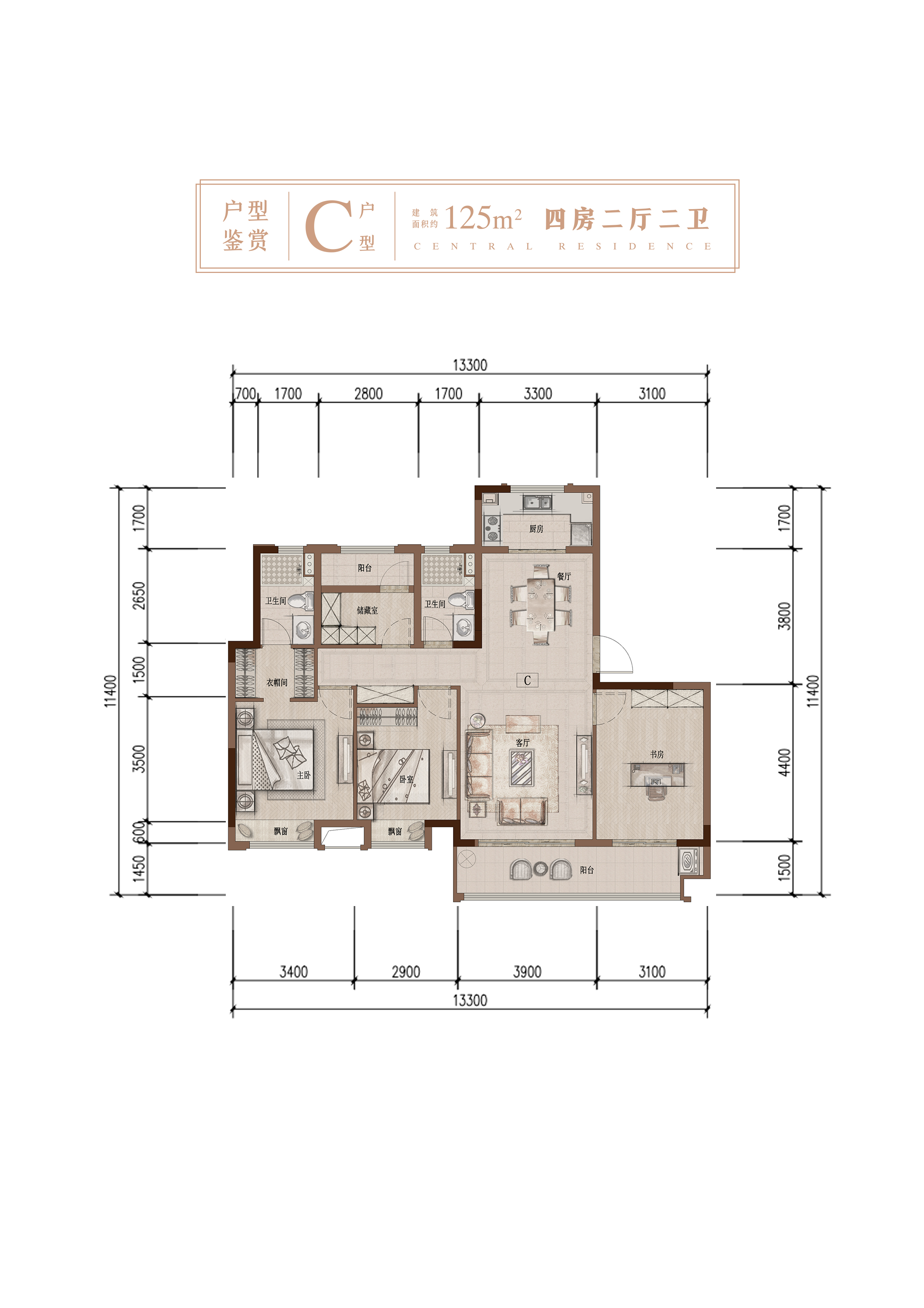 4室2厅2卫-四房二厅二卫125㎡