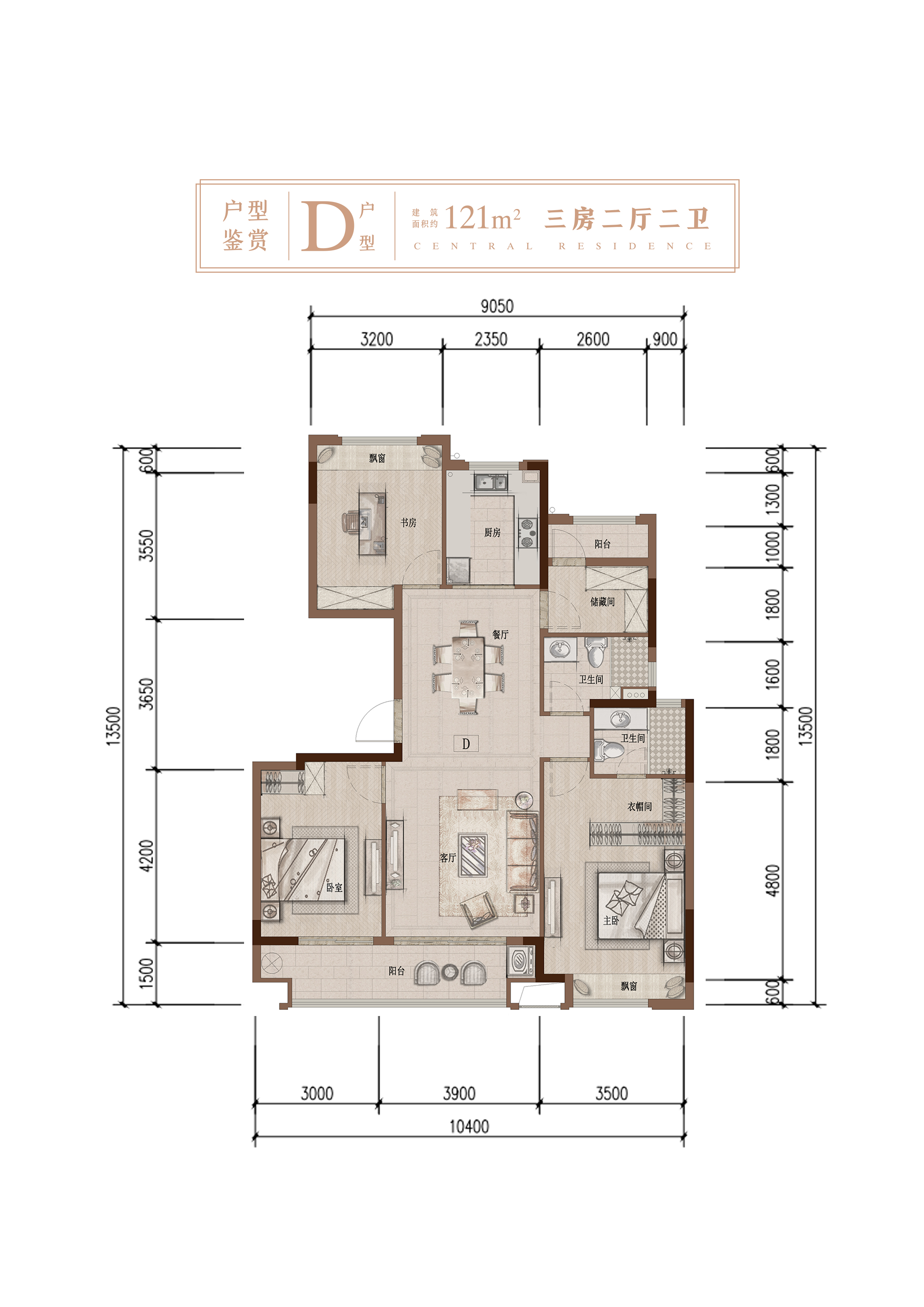 3室2厅2卫-三房二厅二室121㎡