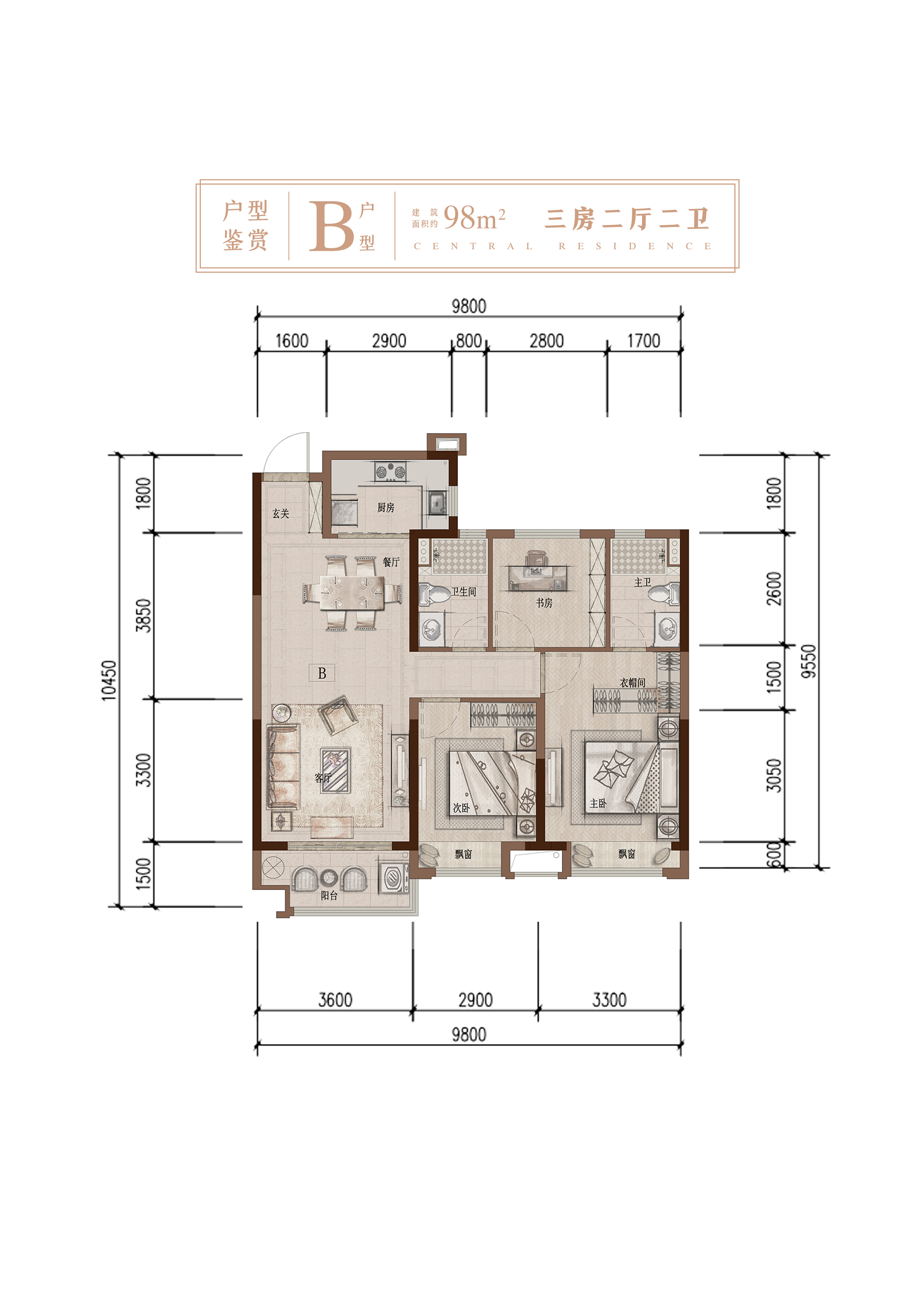 3室2厅2卫-二房二厅二卫98㎡