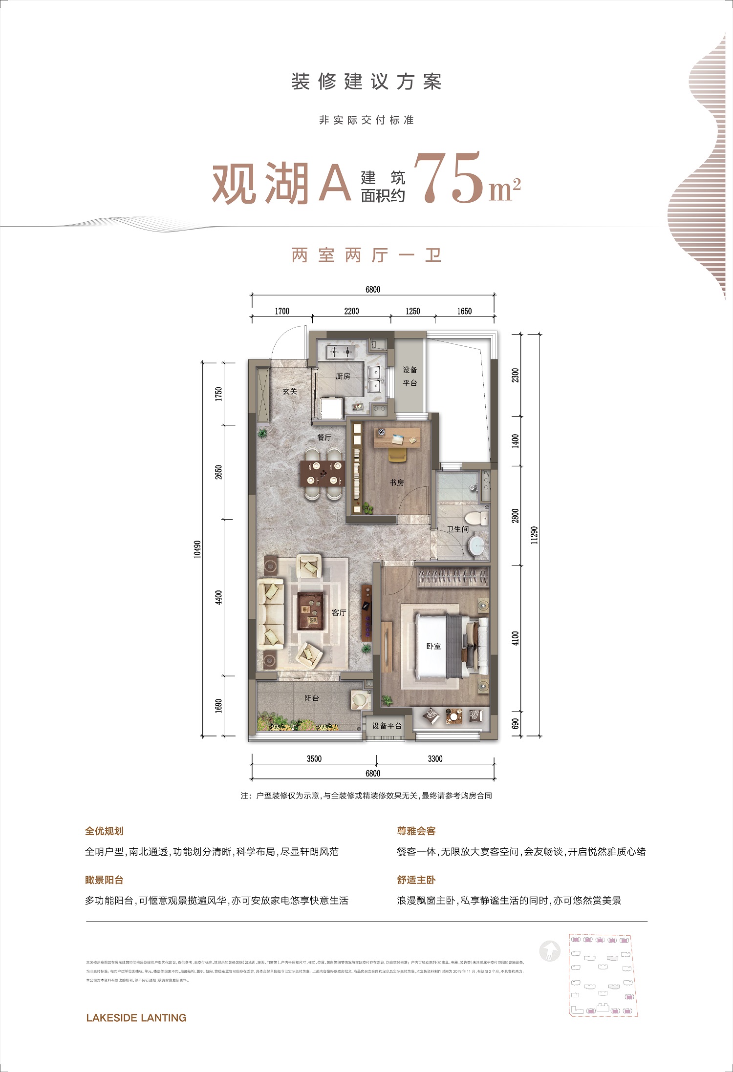 2室2厅1卫-观湖A户型2室2厅二卫 约75㎡