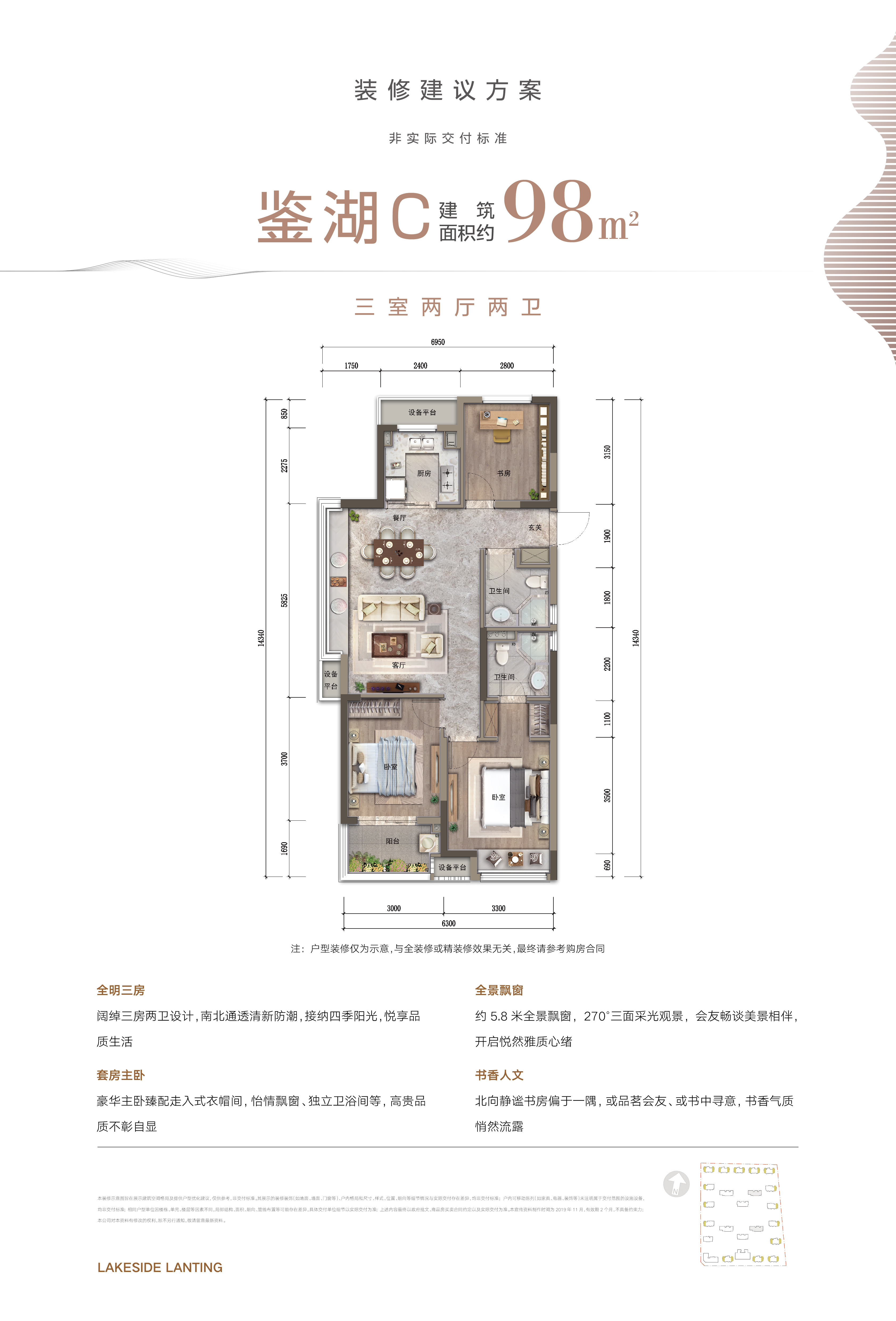 3室2厅2卫-鉴湖C户型 三室二厅二卫 约98㎡