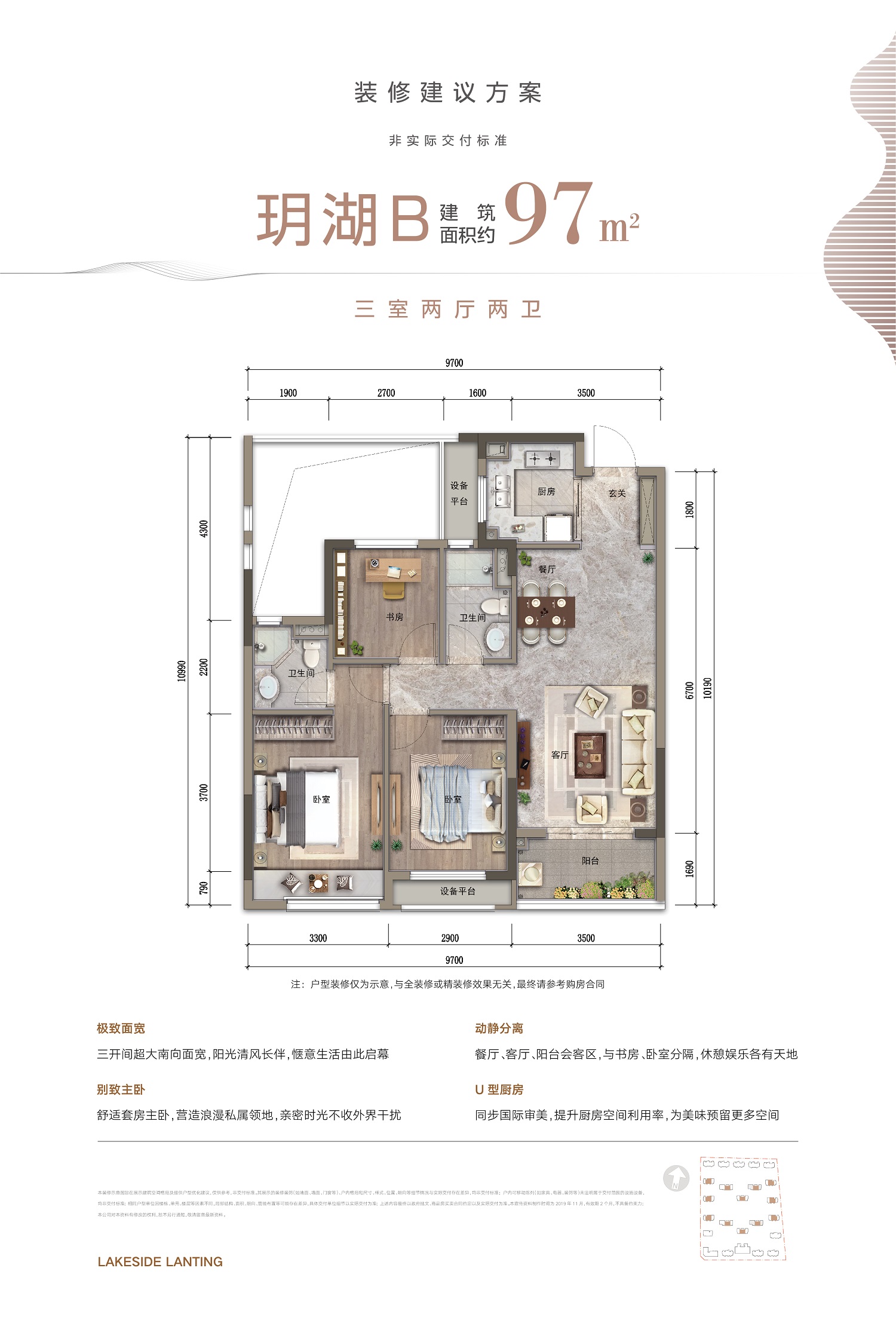 3室2厅2卫-玥湖B户型 三室二厅二卫 约97㎡
