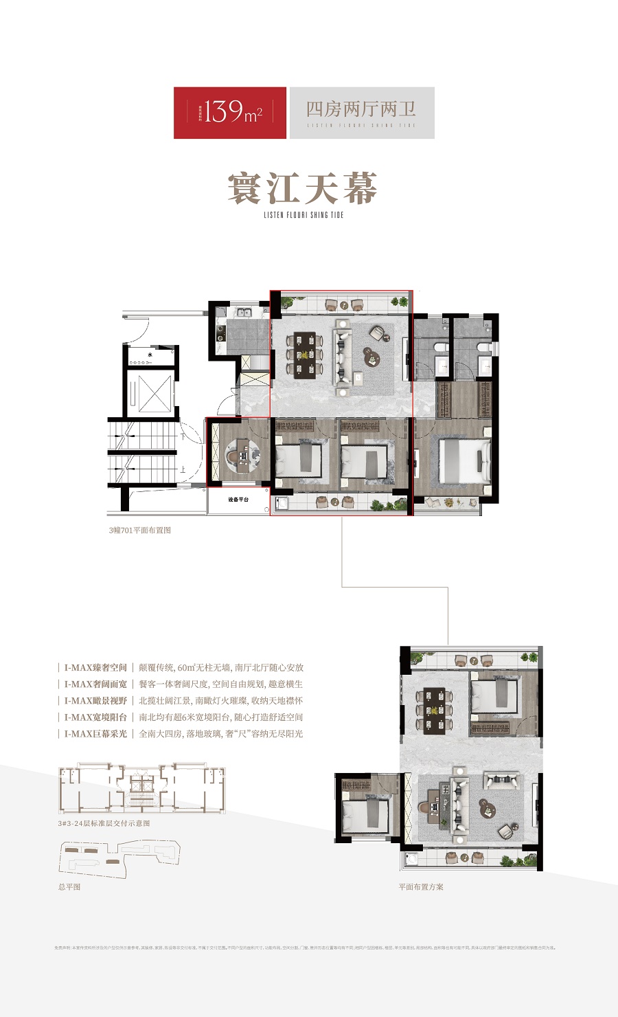 小区占地20668㎡,总建筑面积51425㎡,地上建筑面积39761㎡,地下建筑面积11664㎡,容积率只有2.1,绿化率25%,由3800平方的9班制幼儿园,1栋LOFT商业办公楼和4栋高层住宅组成,平层面积是129㎡和139㎡两种户型还有6套185㎡顶跃