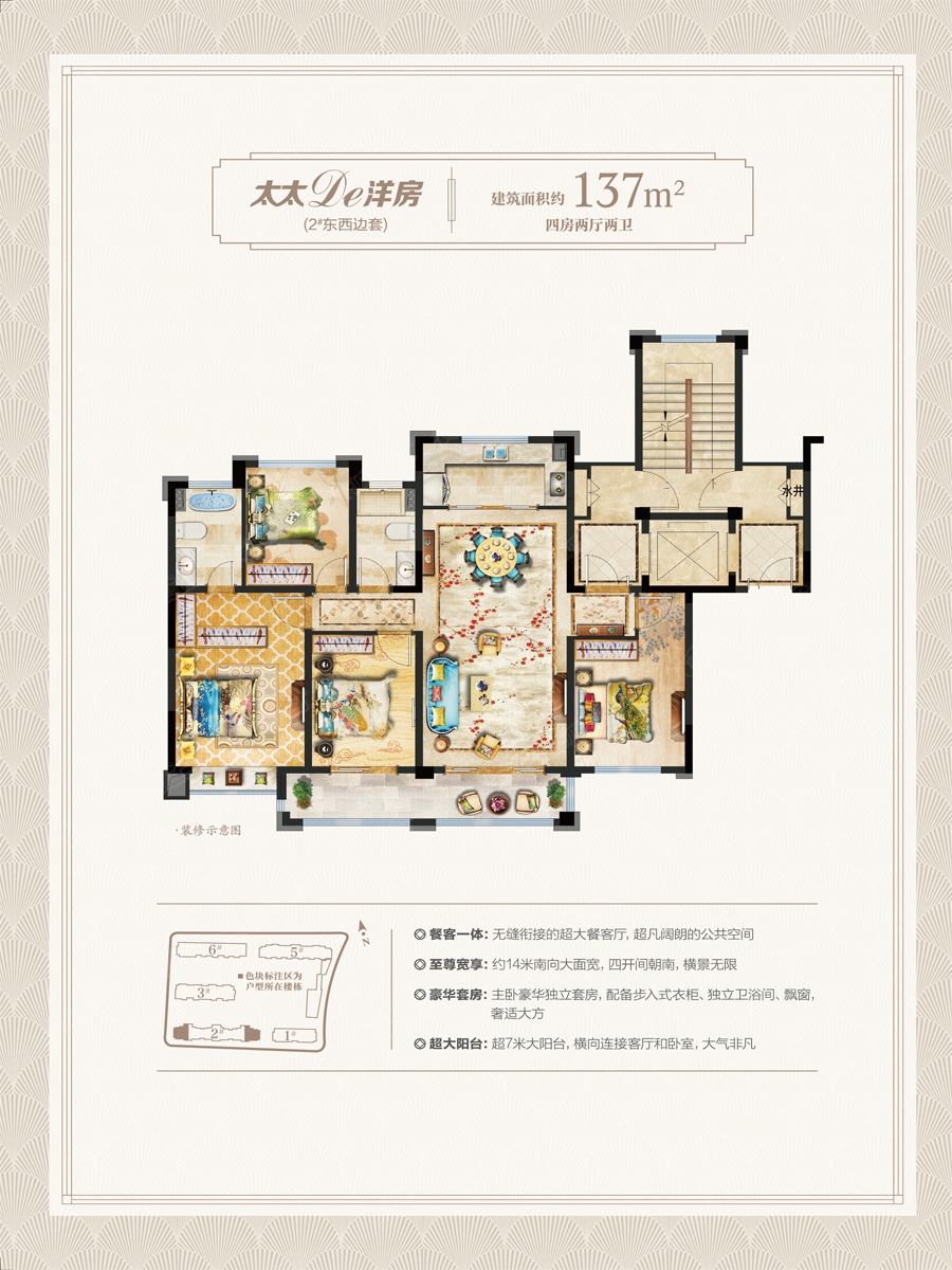楼盘优势: 1、1公里生活圈,欧尚南,近万达;2、双公园住区,项目中庭超5000方公园,外部超5000方市政公园;3、140方四朝南,129方大地方,跃墅带超大露台,153方叠墅;4、超阔楼间距,17层高层,楼间距近80m。