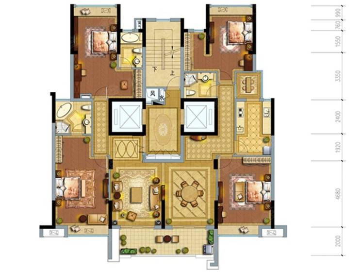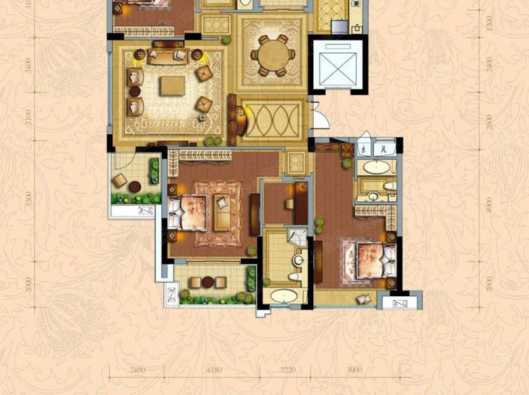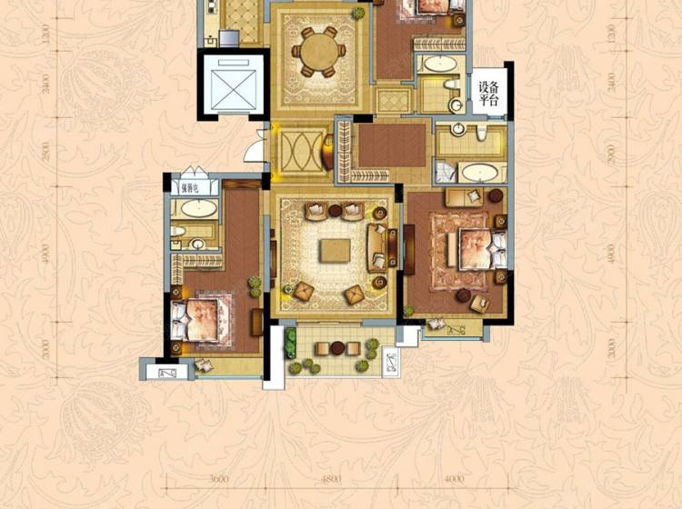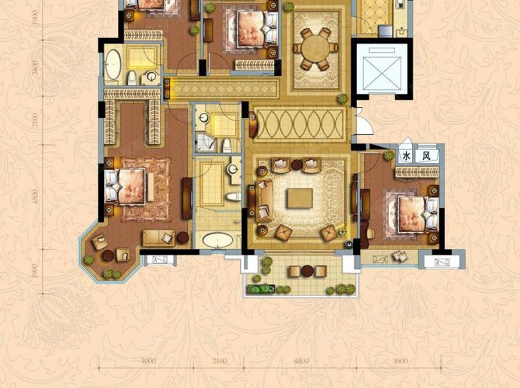 银河名苑岛府,隐于两河湾汇之处,汲取天然河岸风华,因地制宜,部分户型设计入户花园,营造私人空中后花园;上选现代法式建筑形制,通过圆拱型窗饰、古典装饰纹路、横竖向装饰线等经典现代法式建筑语汇,再现法式建筑尊贵、典雅、稳重、纯洁的风韵。取意于帕拉迪奥十字圆厅户型创意,银河名苑以十字中轴为核心,分别集中设置公共礼仪区与私密生活区,营造尊贵私密生活。
