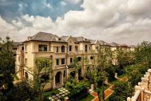 银河名苑坐落于城市繁华中心的一线秘境,原生水系环绕,将地块分割城几大岛国,独立如天然王国,根据隔着特性规划,独具特色的亲水园林,尤其高层公寓半岛,由建筑围合形成多个大中庭花园,四季风华,俯仰在怀。银河名苑岛墅,秉承“联排独栋化”创新思路,在同一栋联排别墅中实现英法意三国经典建筑形制优质融合,即确保每一套联排相互有别,但整体风格又自然相融,浑然一体。