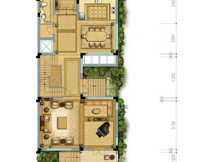 银河名苑岛墅,除去常规前庭、后院之外、借鉴欧美时下流行的酷雅——多庭院生活方式,创新性地设计内中庭,形成前庭、后院、内中庭三重庭院,业主可以在不同的庭院品茗,阅读、休憩、冥想、与邻居闲聊、种花……真正实现“有天有地”的别墅生活。