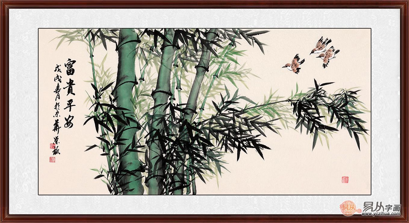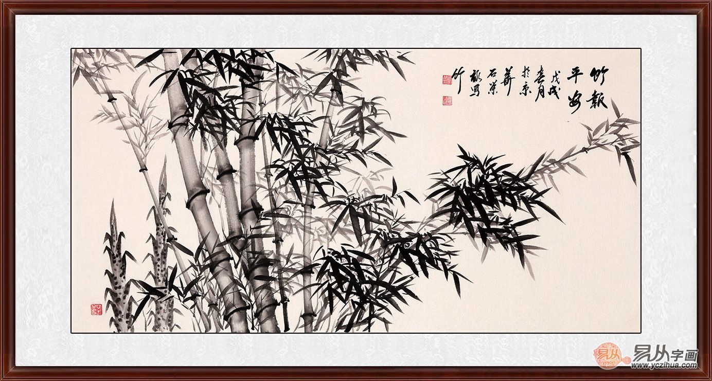 石荣禄四尺横幅竹子图《富贵平安》作品来自:易从网