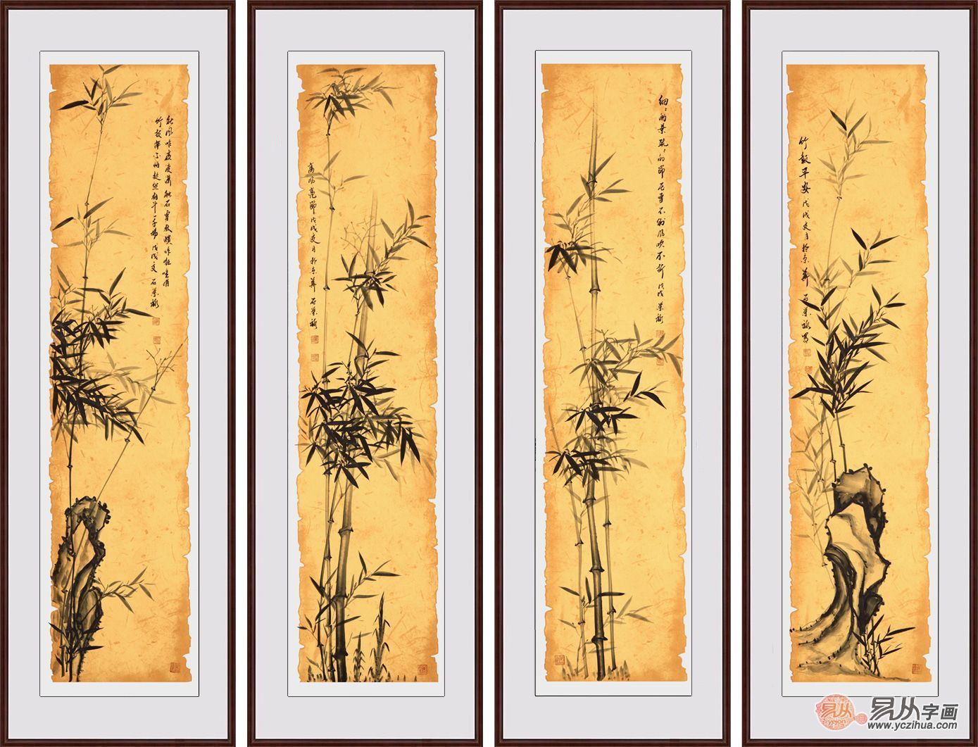 石荣禄新品竹子四条屏《竹报平安四条屏》作品来自:易从网