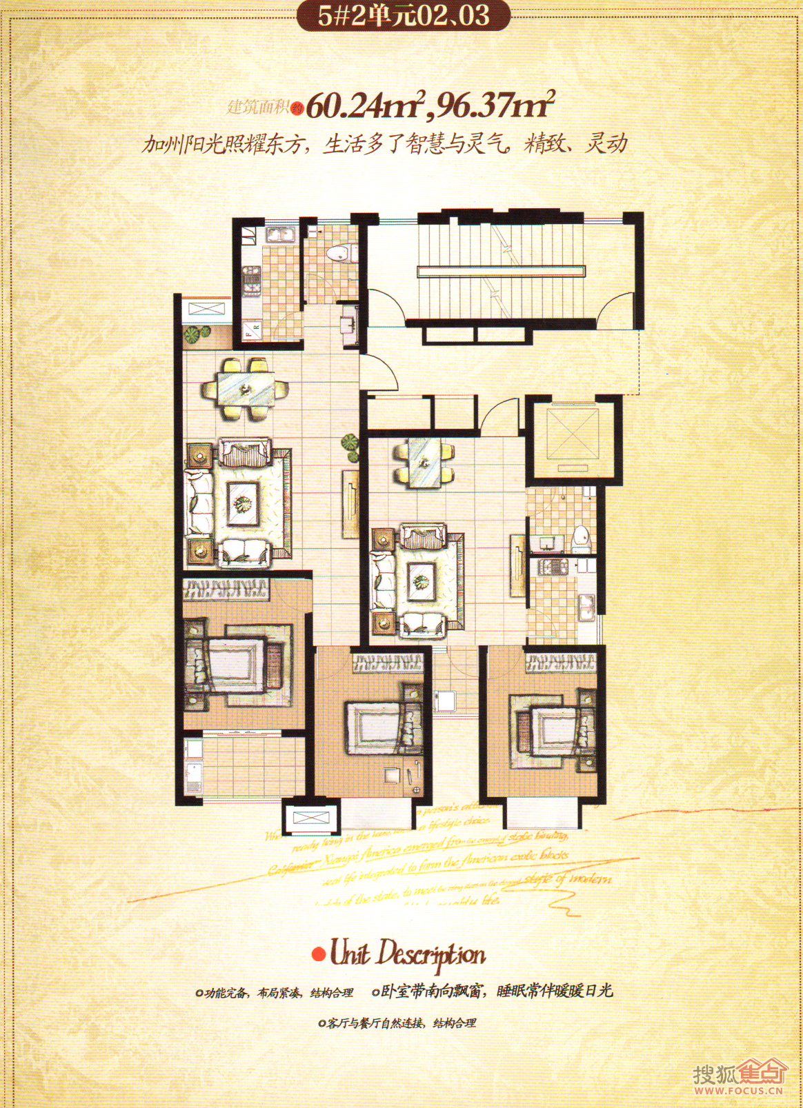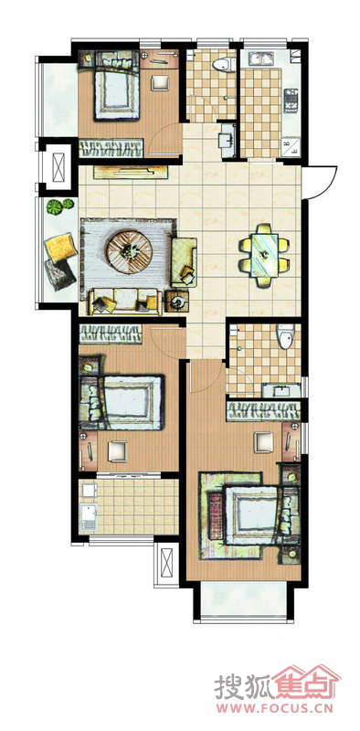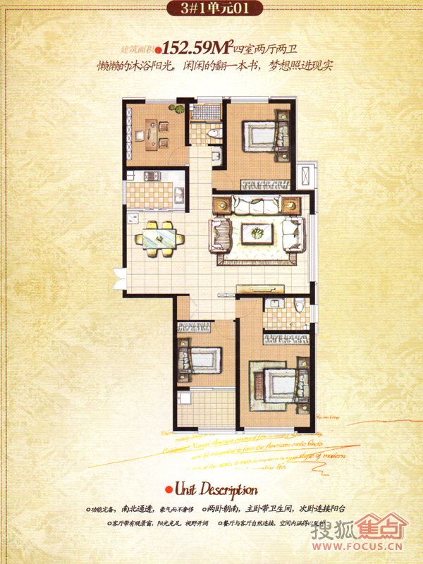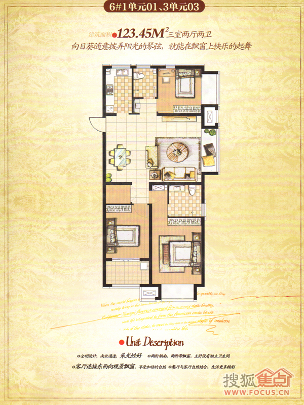 3室2厅2卫-5号楼1单元01和3单元03户型3室2厅2卫1厨122.00㎡