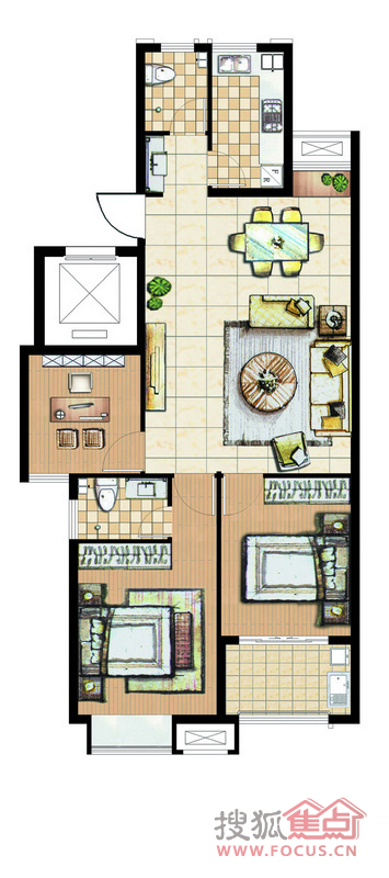 3室2厅1卫-5号楼1单元02.03和3单元01.02户型3室2厅1卫1厨85.82㎡