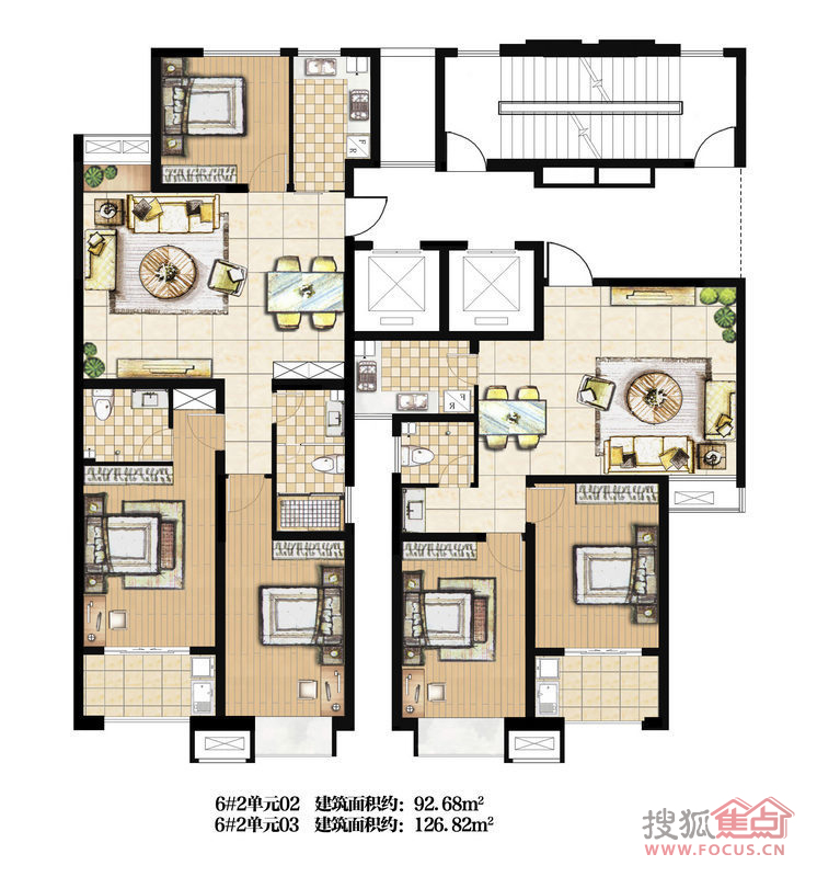3室1厅2卫-6号楼2单元02.03户型3室1厅2卫1厨126.82㎡