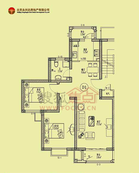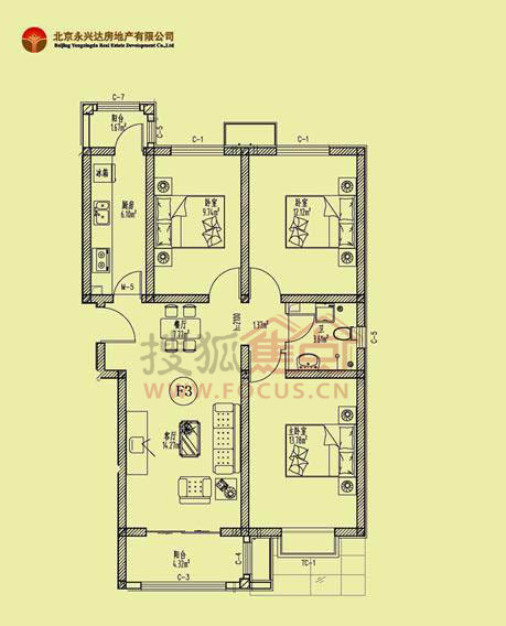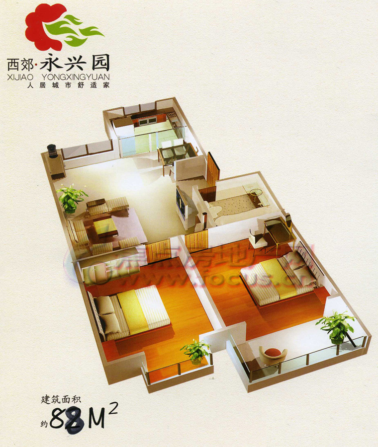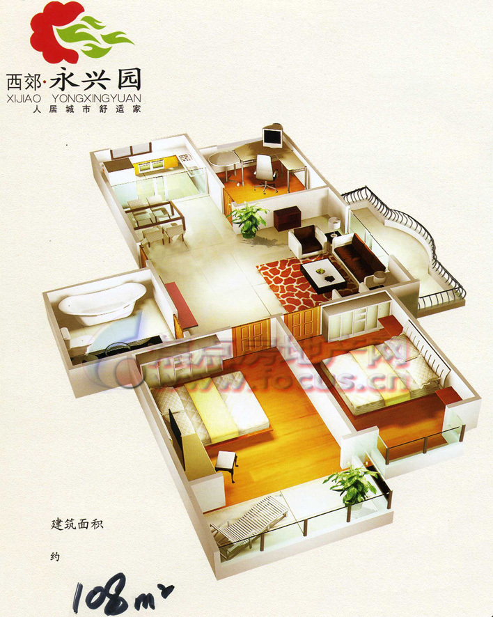 3室2厅1卫-永兴园三室两厅一卫108平米