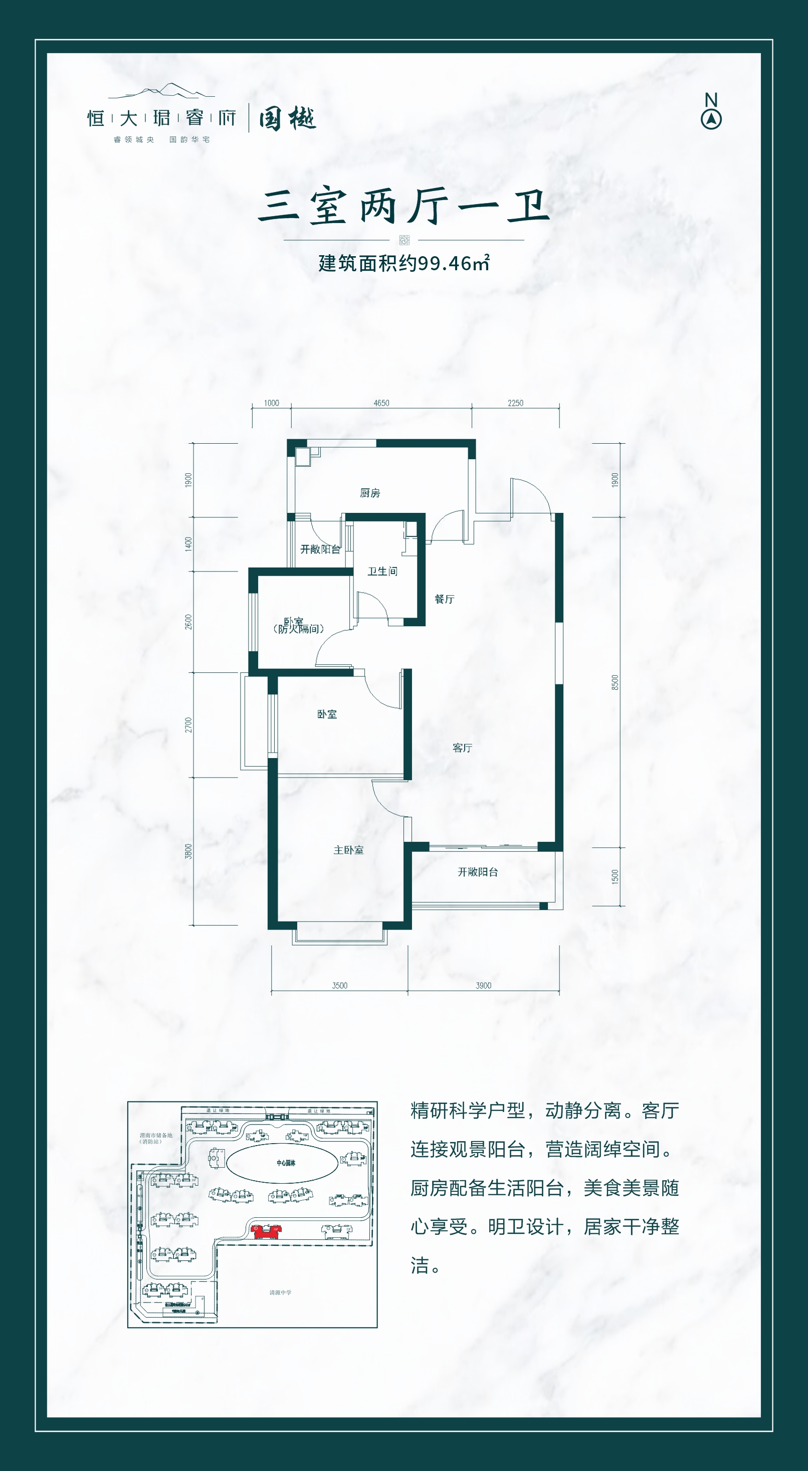 3室2厅1卫-建面约99.46㎡三室两厅一卫