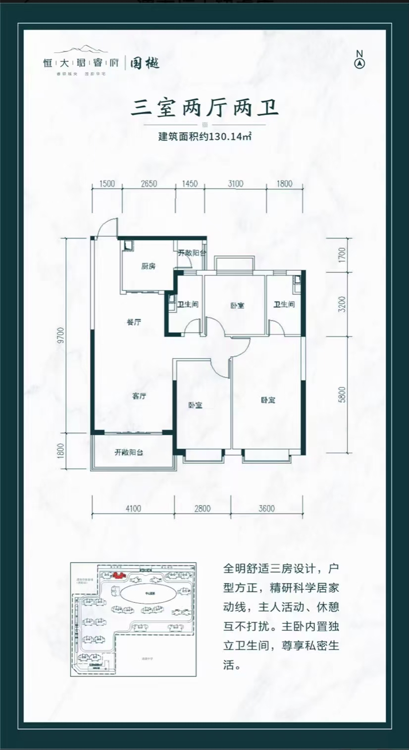 3室2厅2卫-建面约130.14㎡三室两厅两卫
