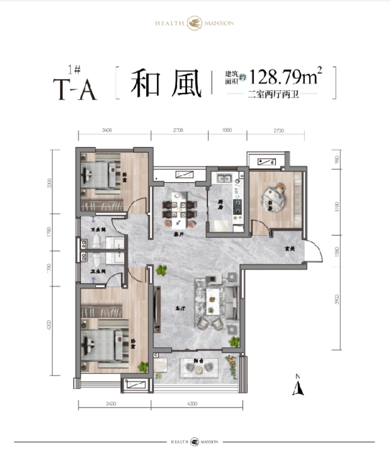 2室2厅2卫-和风 -128.79㎡ | 两室两厅两卫
