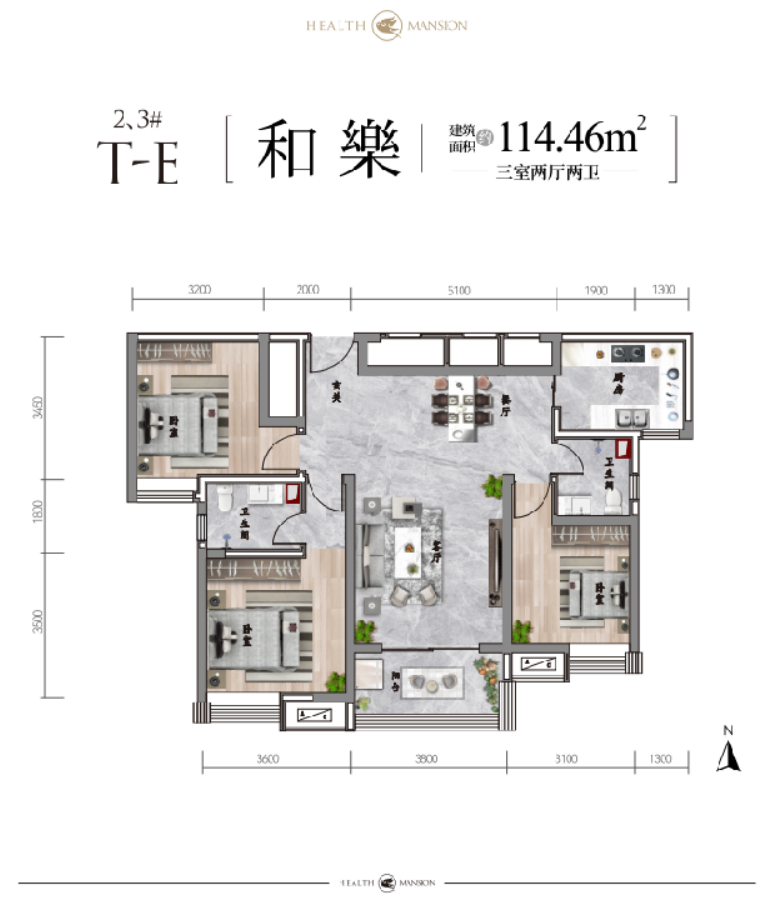 3室2厅2卫-和乐-114.46㎡ | 三室两厅两卫