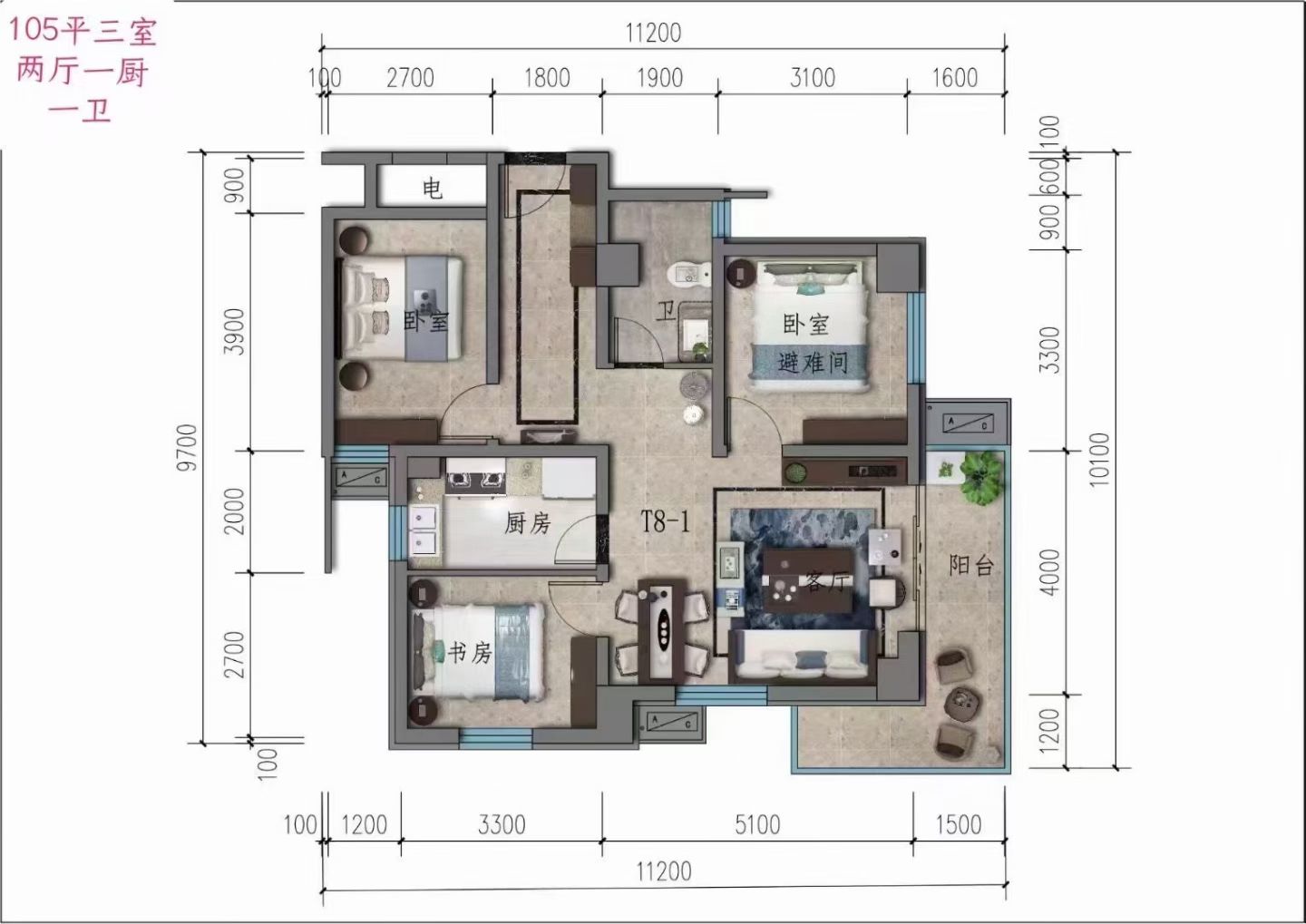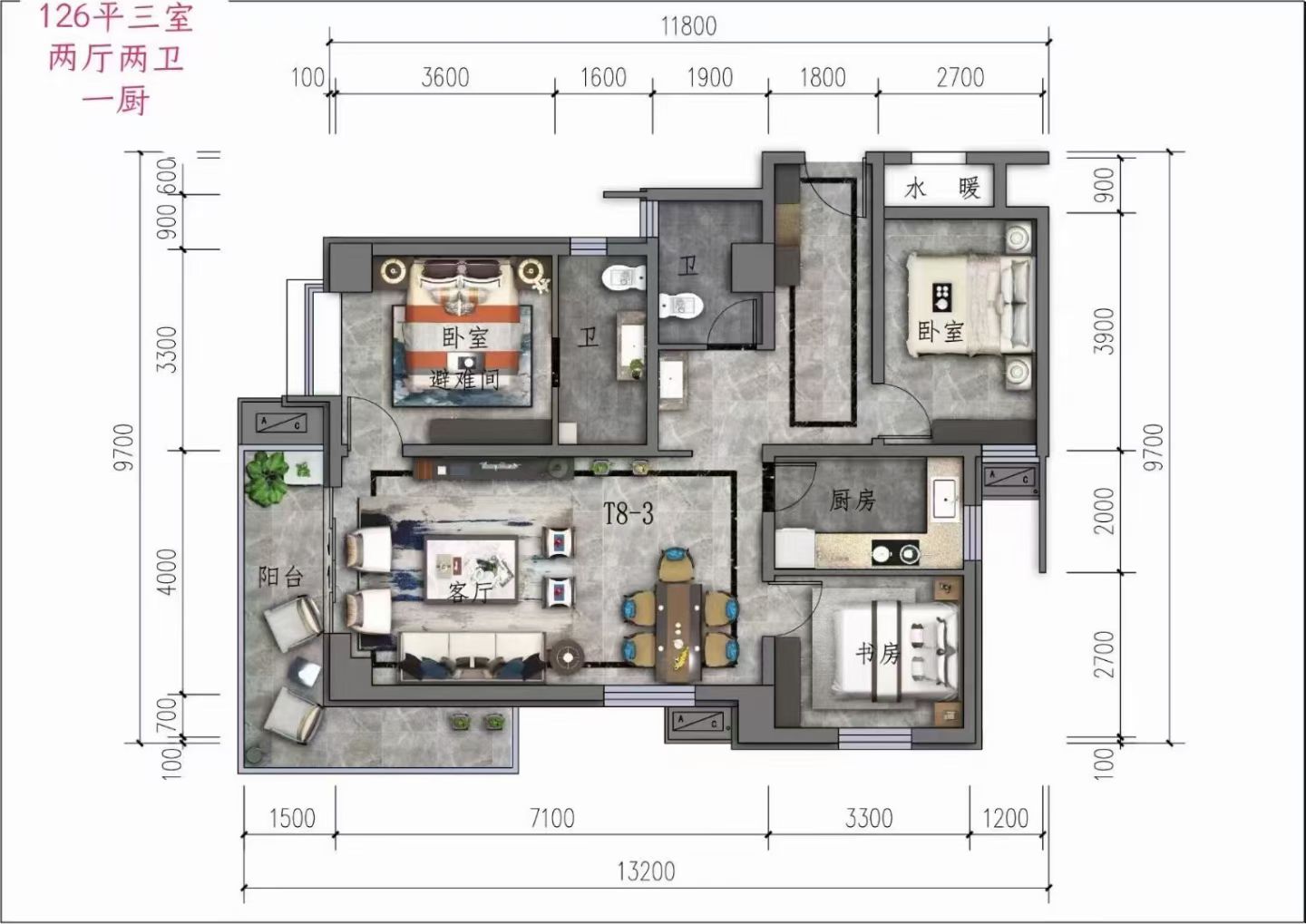 通达·朗郡小区, 70米楼间距,入户直饮水;集中供暖,地辐热入户。 项目设计人车分流,负两层地下停车场。通达·朗郡8号楼 105㎡经典三居,126㎡豪华三居。