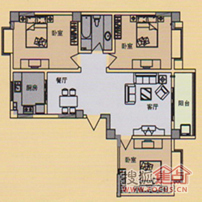 0室-D(7号楼 三室两厅一卫 129㎡)