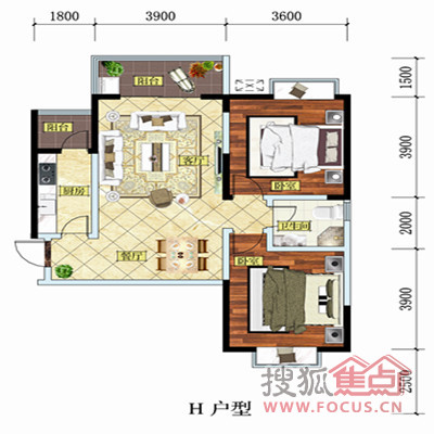 0室-H(两室两厅一卫 96.94㎡)