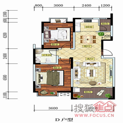0室-D(两室两厅一卫 100.22㎡)