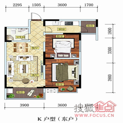 0室-K(东户 两室两厅一卫 87.73㎡)