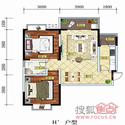 0室-H'(两室两厅一卫 96.85㎡)