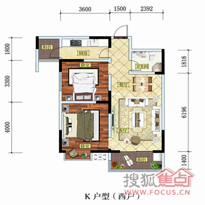 0室-K(西户 两室两厅一卫 87.73㎡)