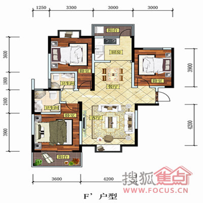 0室-F'(三室两厅两卫 122.84㎡)