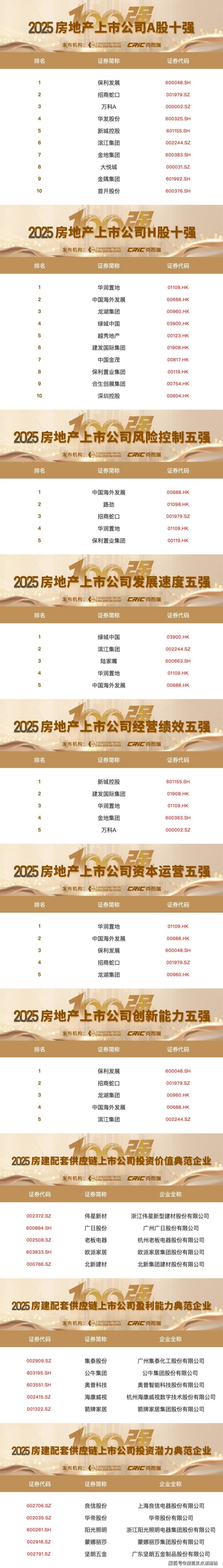 5月22日,由中国房地产业协会指导,上海易居房地产研究院、克而瑞主办的“2025房地产上市公司测评研究”工作发布了研究成果。《2025房地产上市公司测评研究报告》及2025年房地产上市公司综合实力50强、细分领域单项榜正式发布。